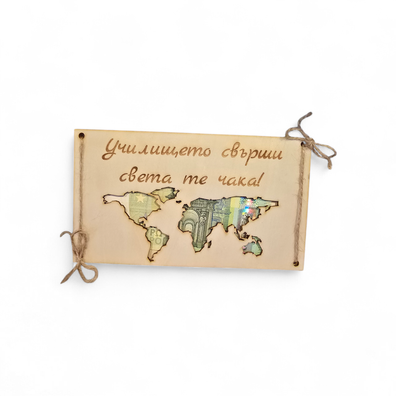 Дървен плик за пари „Карта на света“